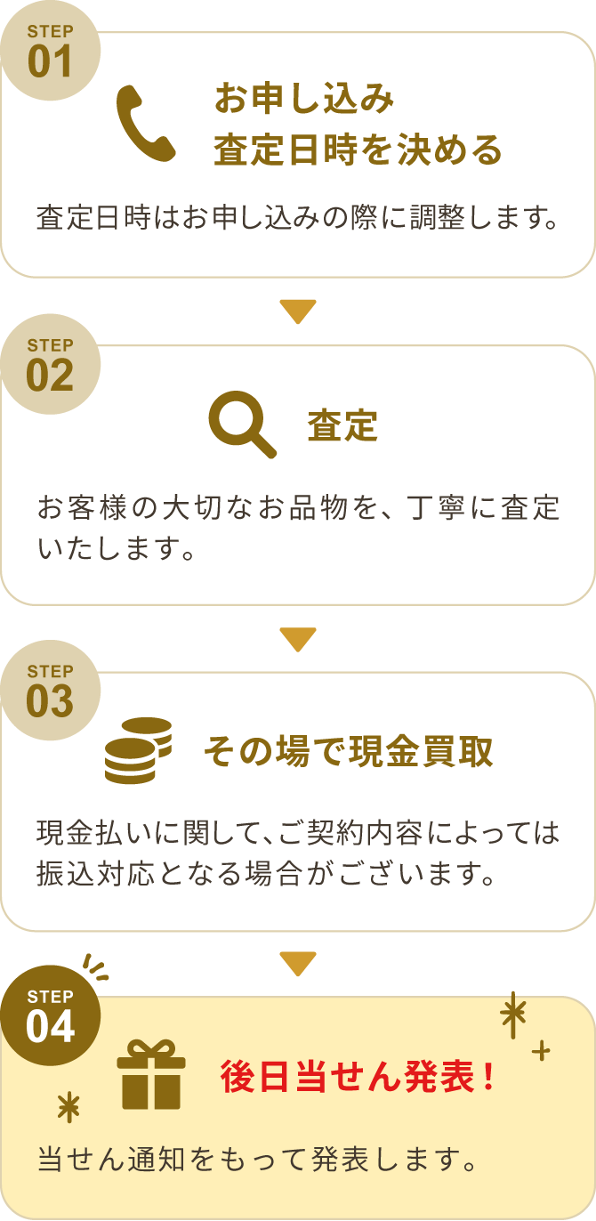 買取金額・当せん金額それぞれでお支払いタイミングが異なります。